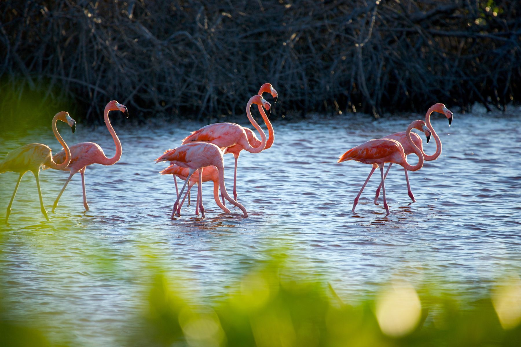 Holbox d’abord : cette île sans voiture, bordée d’eaux peu profondes et habitée par des flamants roses et des requins-baleines, offre une parenthèse rare loin du tourisme de masse. Les cénotes ensuite – ces puits naturels sacrés des Mayas, alimentés par des rivières souterraines, où l’on se baigne dans une eau cristalline au cœur de la jungle. Les sites archéologiques de Chichén Itzá, Uxmal ou Tulum donnent une profondeur historique au voyage : Aymeric les aborde avec une approche anthropologique, bien au-delà de la simple visite. Les villes de Valladolid, Mérida et Campeche complètent le tableau – chacune avec son architecture coloniale, sa gastronomie et son identité propre. Et pour ceux qui cherchent une expérience plus sauvage : une sortie en mer à Río Lagartos, entre flamants roses, crocodiles et mangroves, avec un pêcheur local.